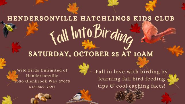 Calling all Hatchlings! Join us to learn really cool facts about caching, or hiding food for winter, and it wouldn't be October without a few tips & 'tricks' for feeding birds in the fall. We'll enjoy a fun craft & many laughs.